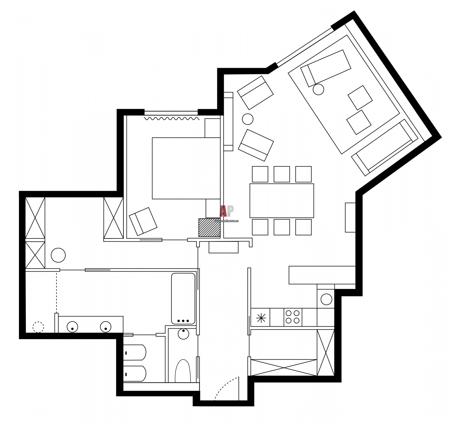 Планировка небольшой 2-х комнатной квартиры в новостройке на Западе Москвы.
