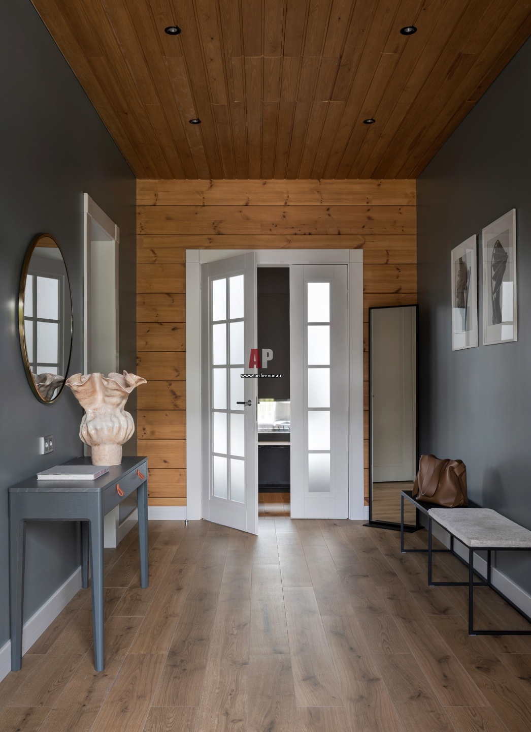 Прихожая. На полу – керамогранит, Atlas Concorde. На стенах – краска Argile. Консоль, The Idea. Банкетка, BoConcept.