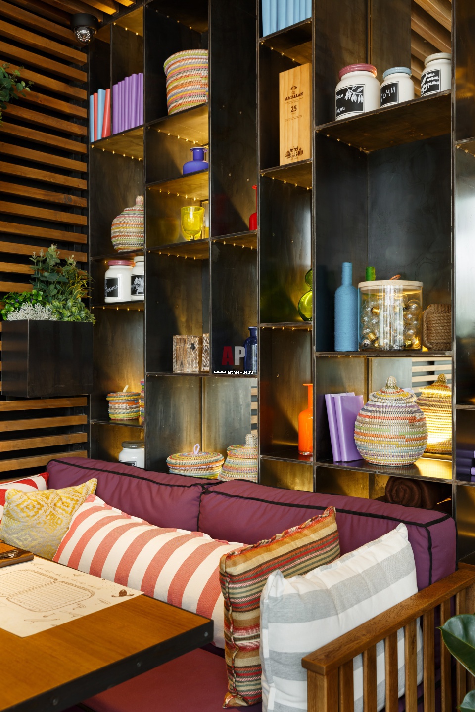 Ниша из металла. В ней – разноцветные восточные предметы.