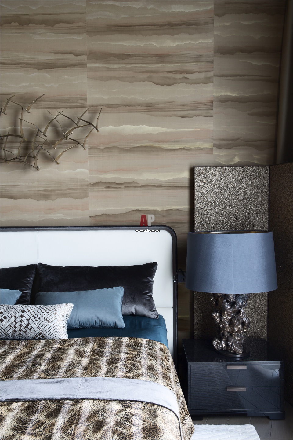 Гостевая спальня оформлена обоями Fromental с акварельным рисунком. Кровать, Smania. Лампы, Shizue Imai. Ширмы выполнены по эскизу дизайнера.