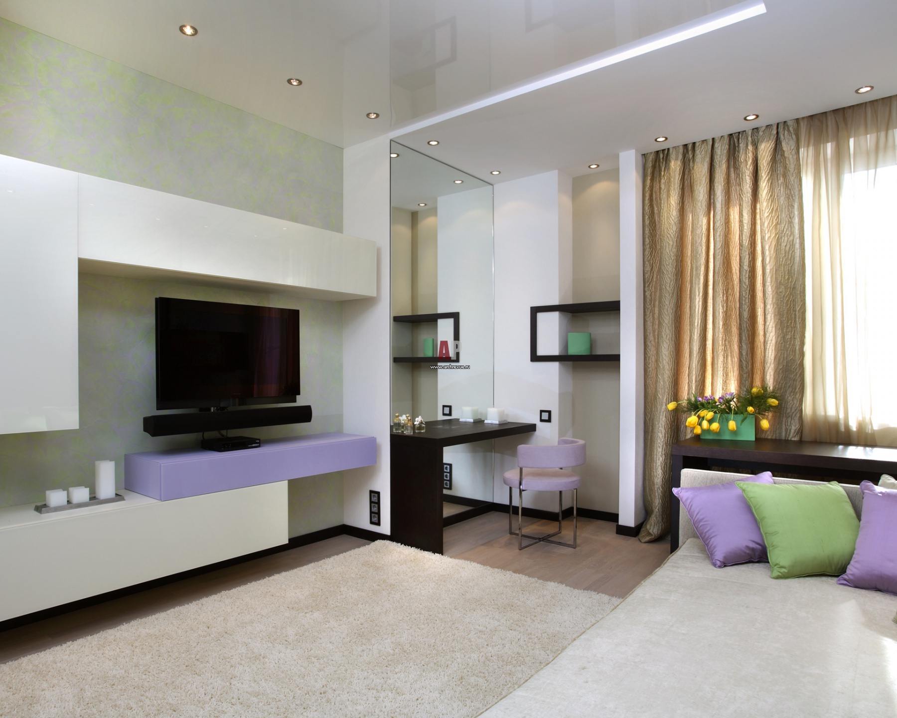 Белую цветовую гамму детской оживляют нежные сиреневые и зеленые тона. Они видны в обивке стульев, в текстильном оформлении. А также они использованы в оформлении стен: многослойное финишное покрытие составлено на основе белого, сиреневого и зеленого цветов. Декоративные покрытия Sikkens, поставщик «Дом Краски / Деко – Эм».