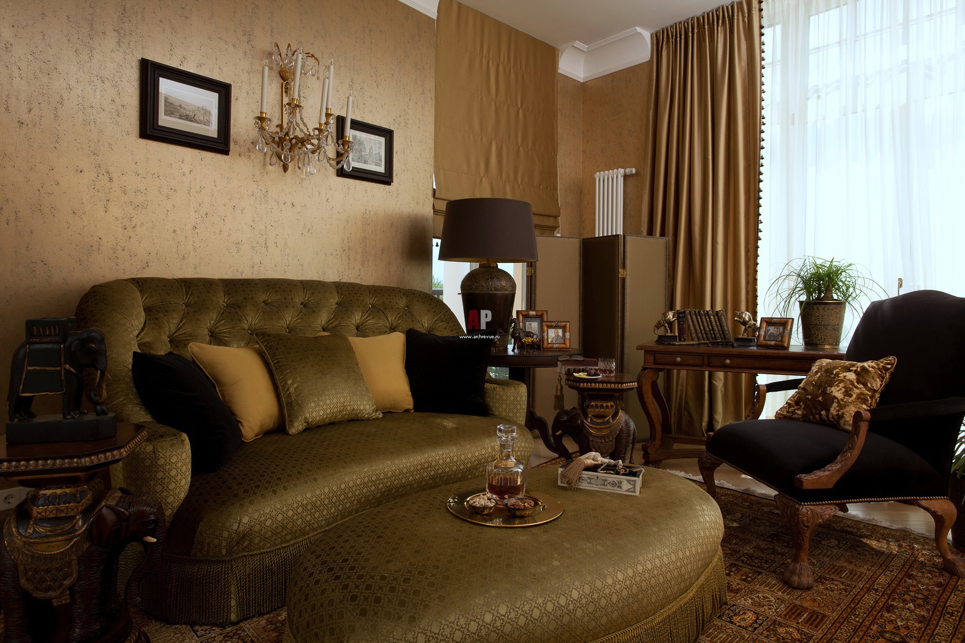 Диван Century Furniture в кабинете особой конструкции. На нем удобно сидеть человеку с очень высоким ростом.