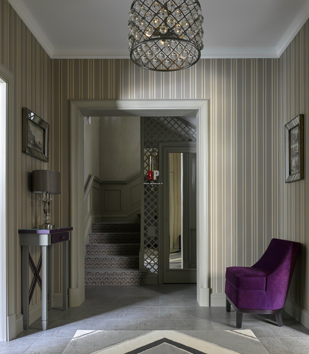 Фото интерьера входной зоны таунхауса в стиле неоклассика Фото интерьера лестничного холла таунхауса в стиле неоклассика