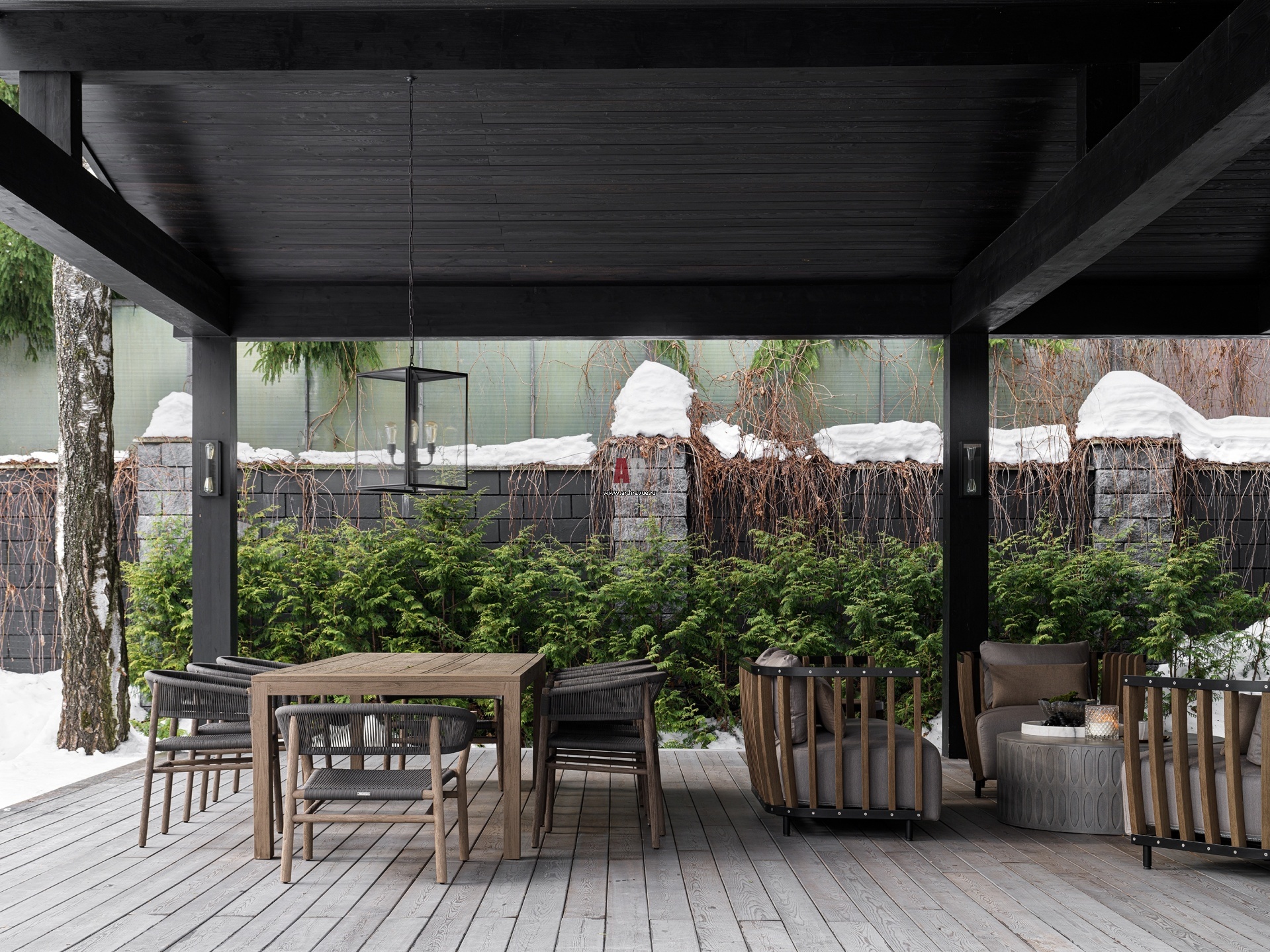 Современная усадьба для большой семьи. Уличная терраса для семейных вечеров, приемов и посиделок с гостями.