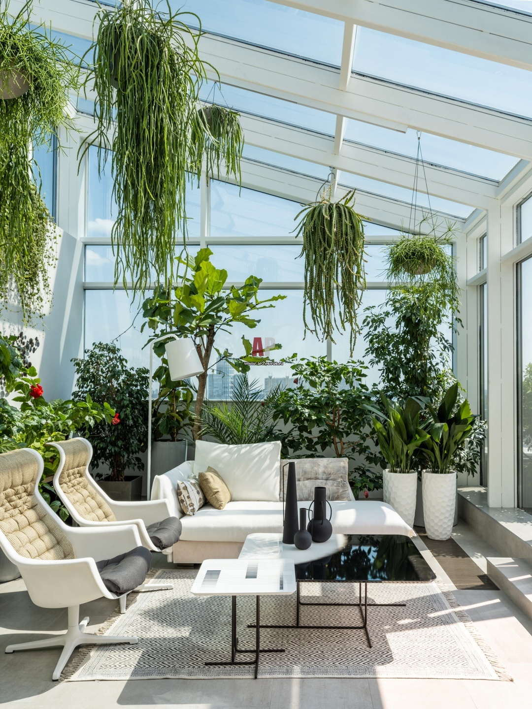Фото интерьера зимнего сада пентхауса в стиле фьюжн
