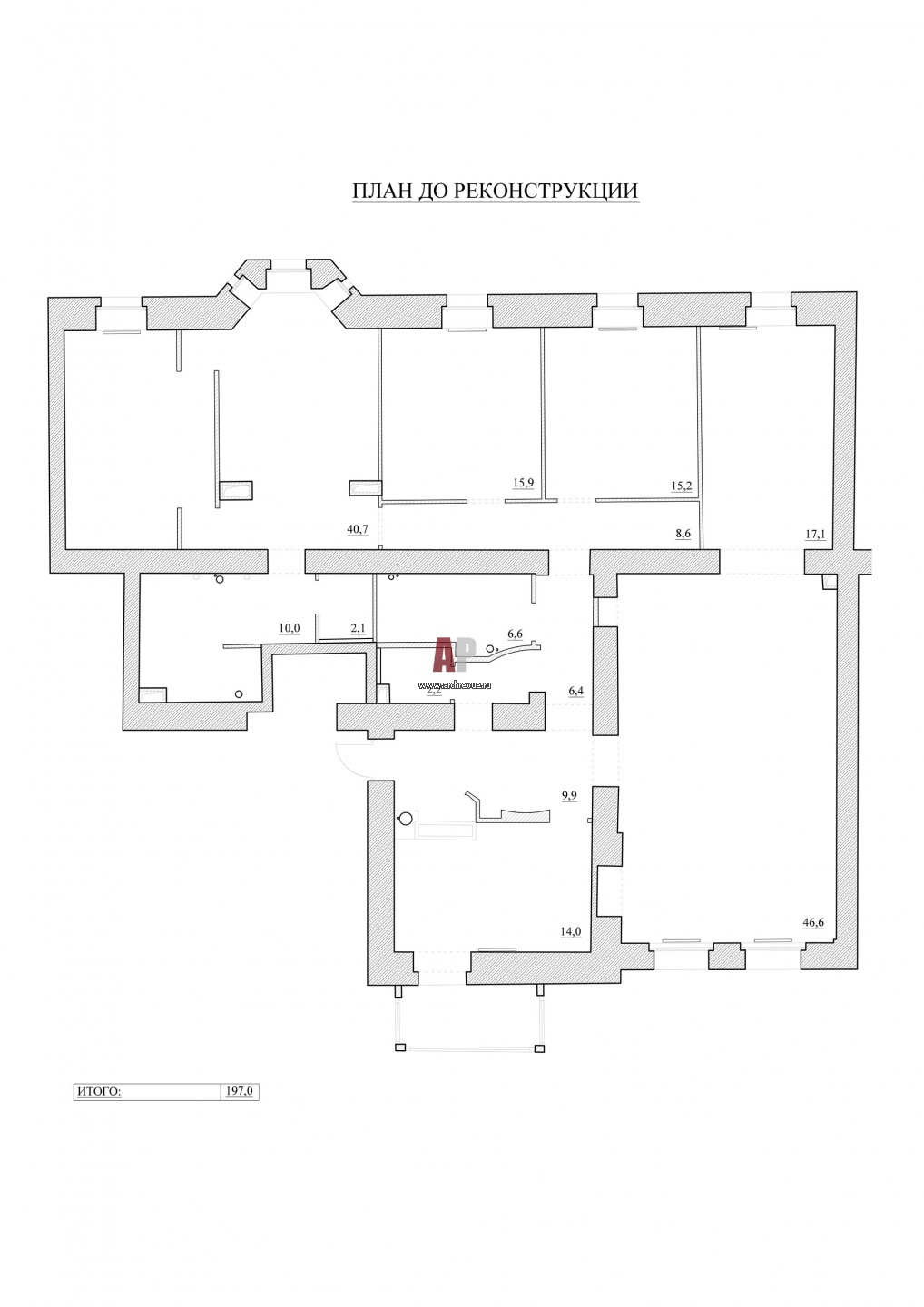 Планировка большой квартиры в стиле современная классика до реконструкции.