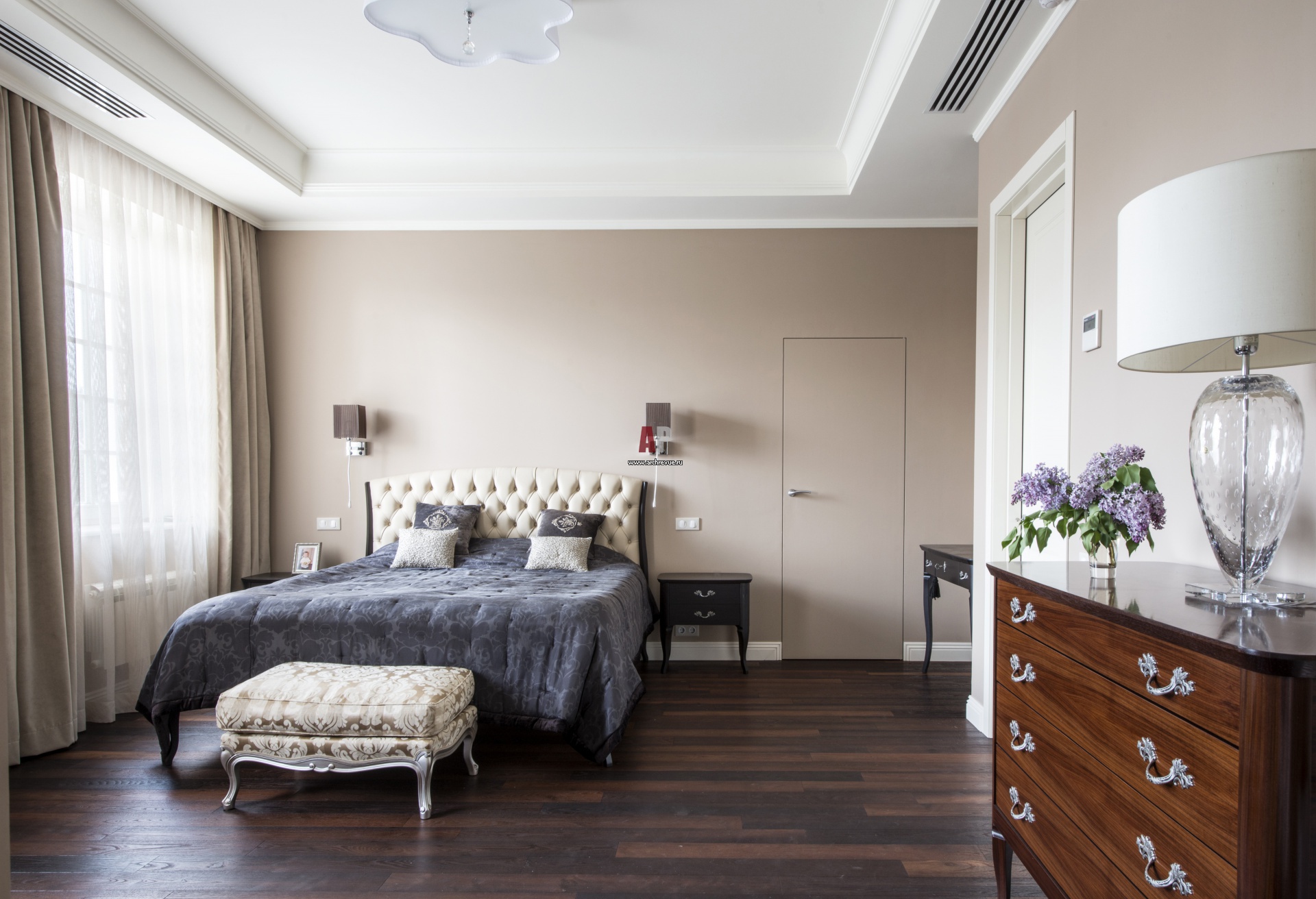 Хозяйская спальня. Спальня кровать, прикроватные тумбы, комод Galimberti Nino, пуф Gilles Nouailhac.