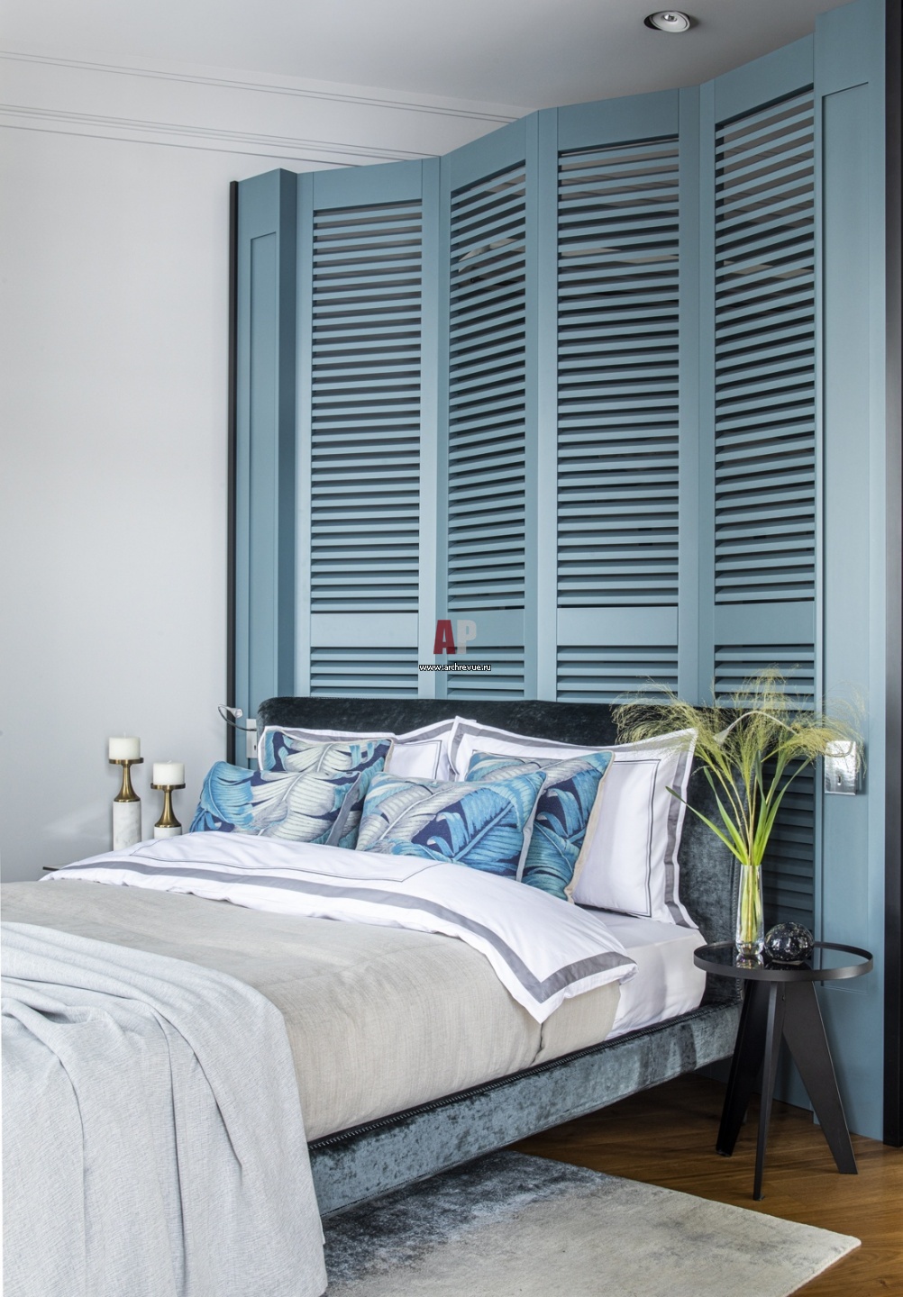 Спальня хозяйки на втором этаже. Кровать, Maxalto. За изголовьем – ширма, отделяющая гардеробную, она изготовлена на заказ.