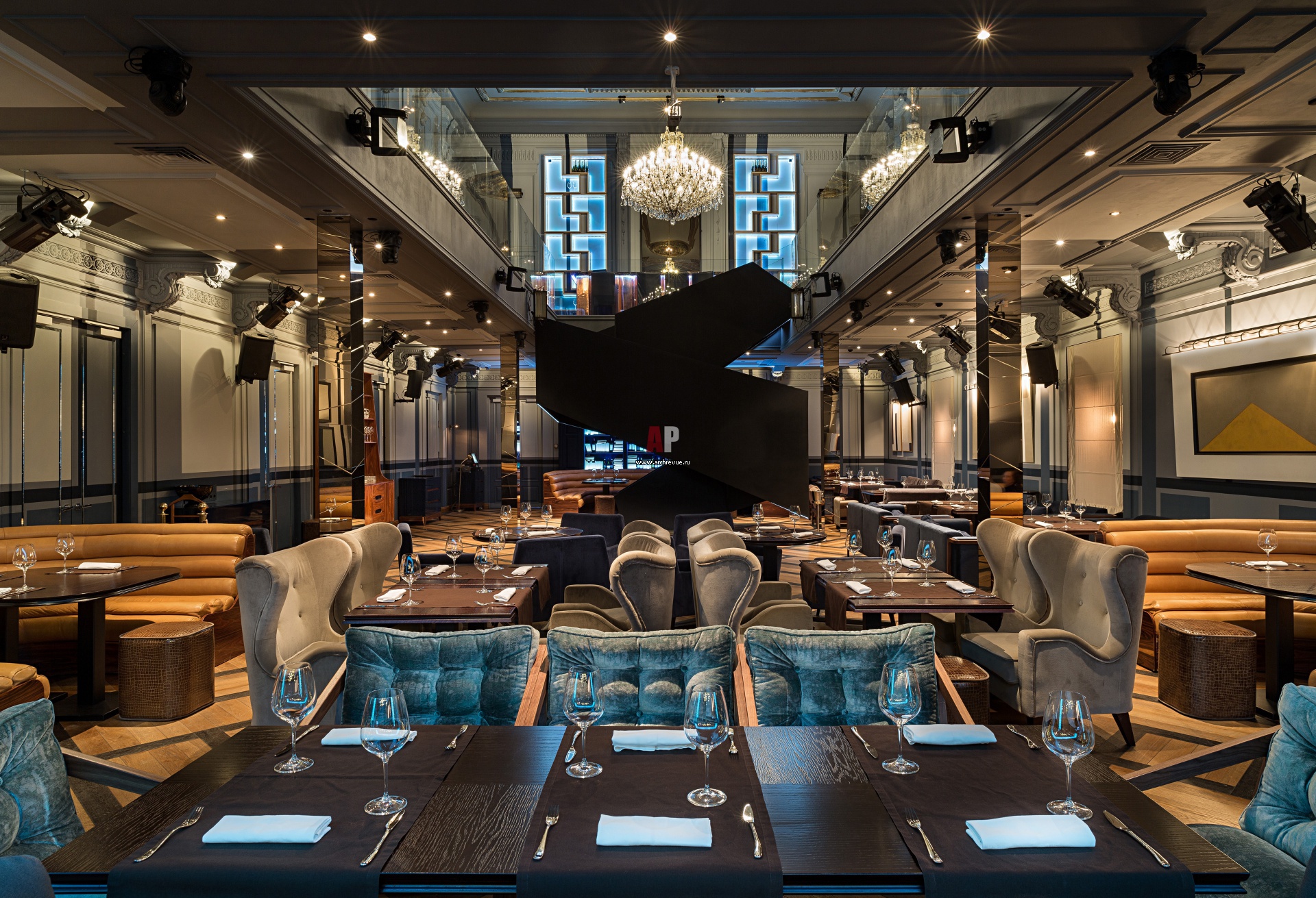 Монументальная лестница из черного металла имеет всего одну опору и словно парит в пространстве. Она вдохновлена одной из ранних работ Казимира Малевича.
