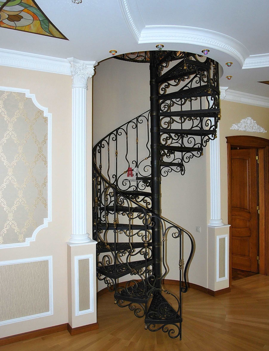 Винтовая лестница на второй этаж выполнена из патинированного металла.