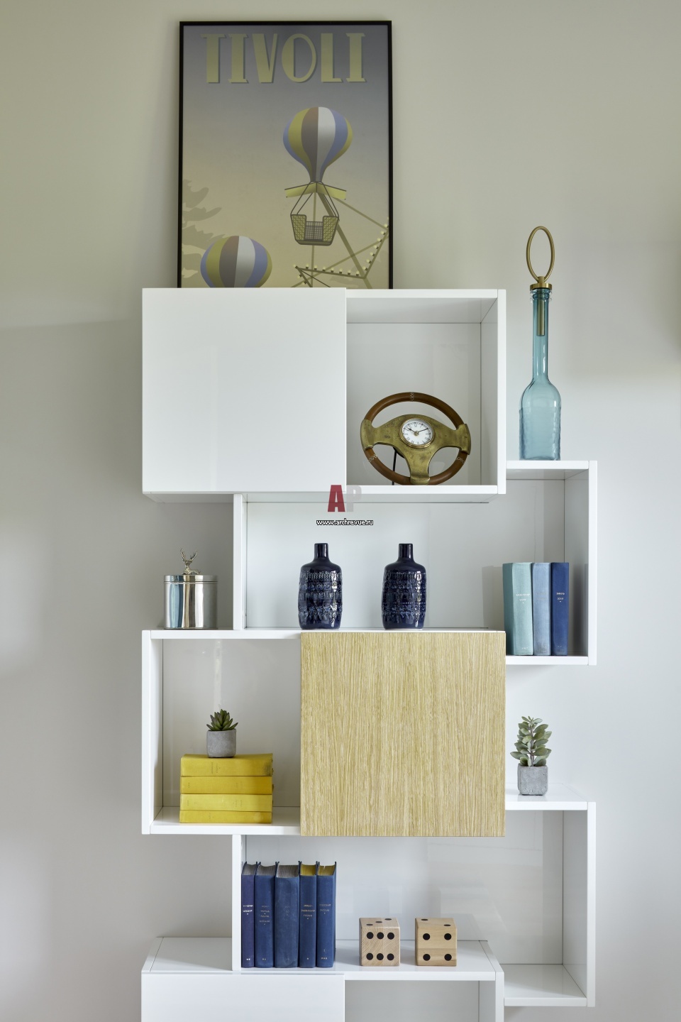 Семейная квартира за городом в природной цветовой гамме. Фрагмент интерьера минималистичной детской комнаты.