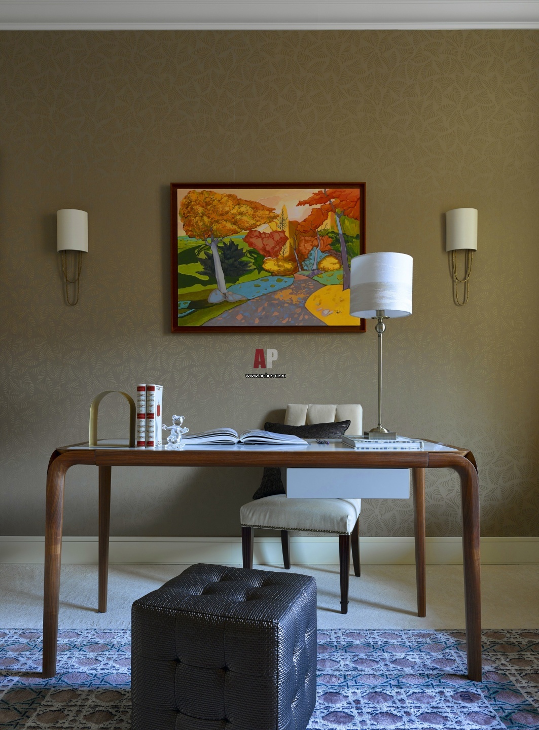 Современная квартира с элементами ар-деко для семьи с двумя детьми. Интерьер кабинета. Бра, Porta Romana.