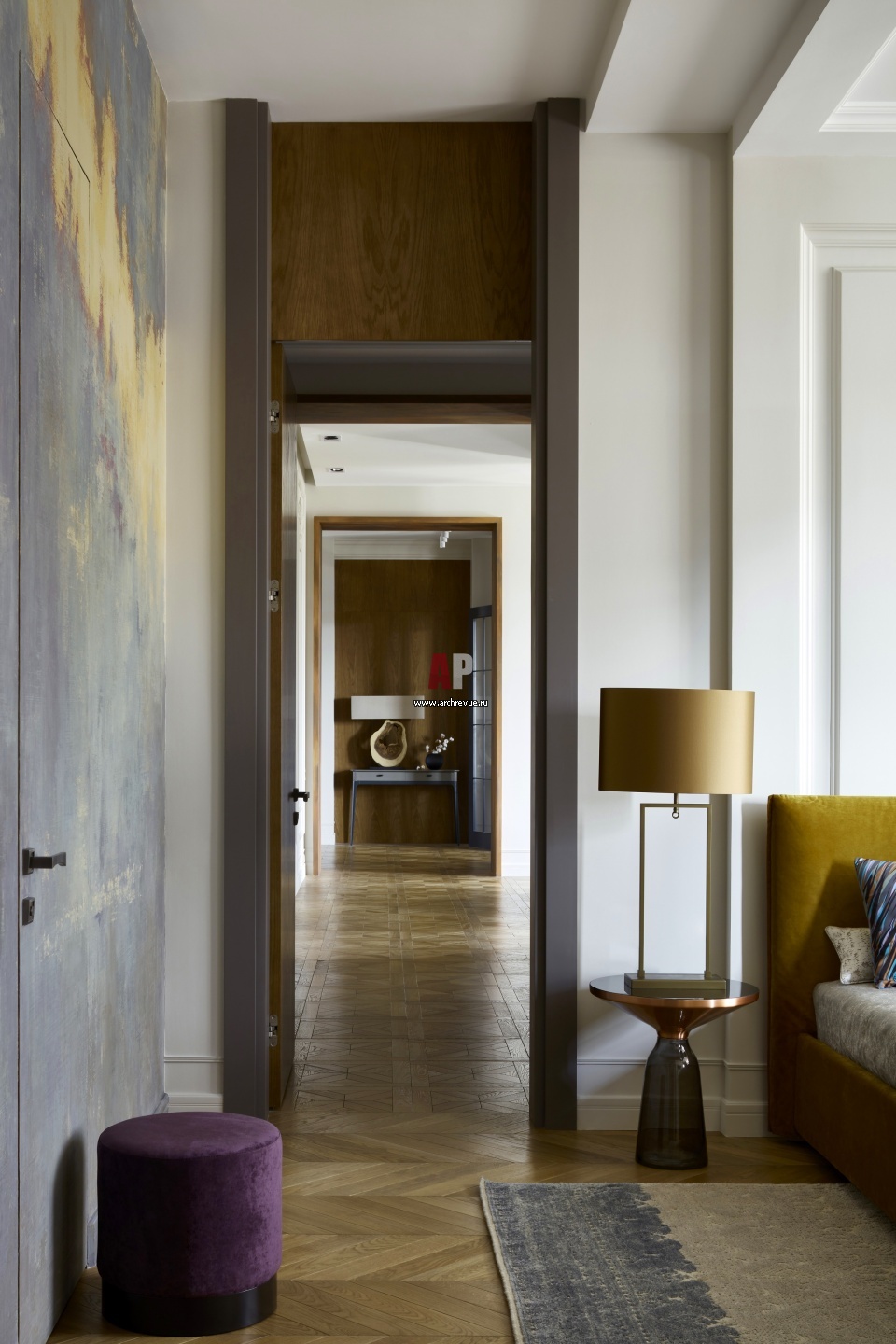 Эклектичная квартира в Алма-Ате. Вид из спальни хозяев на холл и коридор.