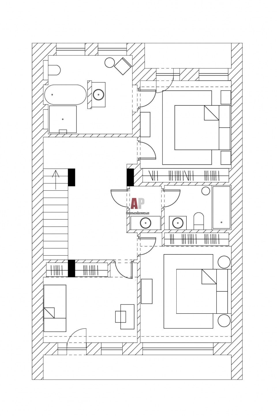 План третьего этажа небольшого трехэтажного таунхауса. Общая площадь – 290 кв. м.