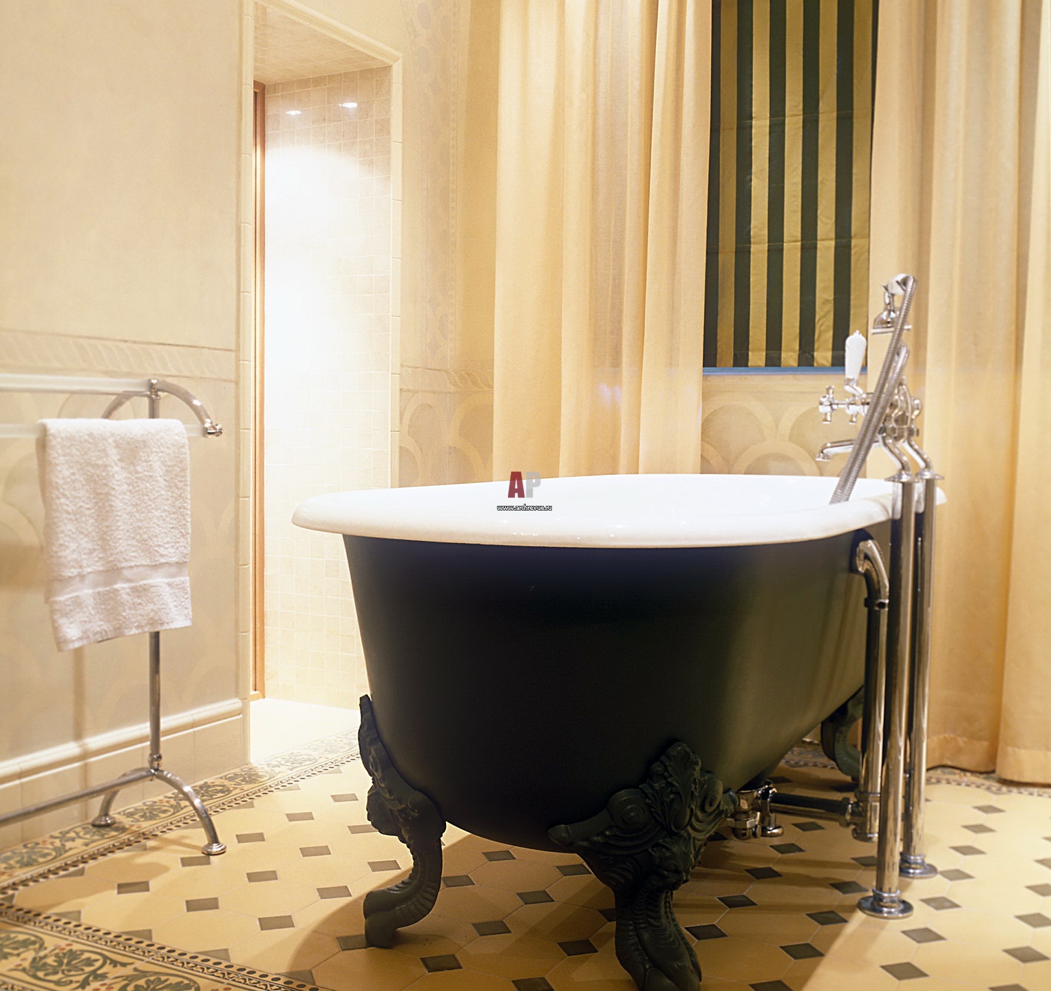 Детский санузел выложен плиткой Original Style, поставщик «Интерьерный салон». Ванная выбрана отдельностоящая, на лапах.