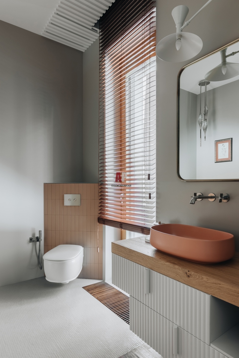 Санузел при спальне с окном. Мебель, Arbi. Смесители, Roca, by Armani.