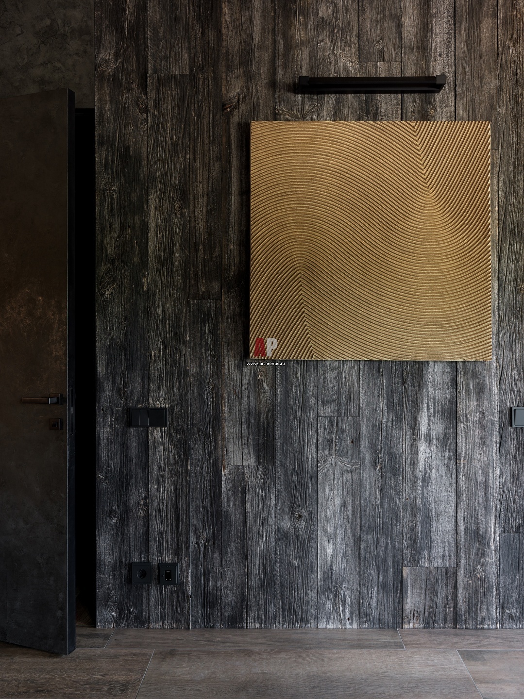 Прихожая. На стене – черная амбарная бельгийская доска, Atmosphere & Bois. На ней – рифленое панно, Gardeco.