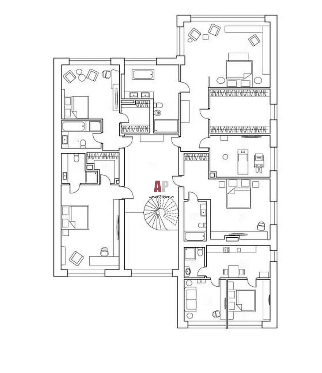Планировка 2 этажа 2-х этажного современного дома, 600 кв. м.