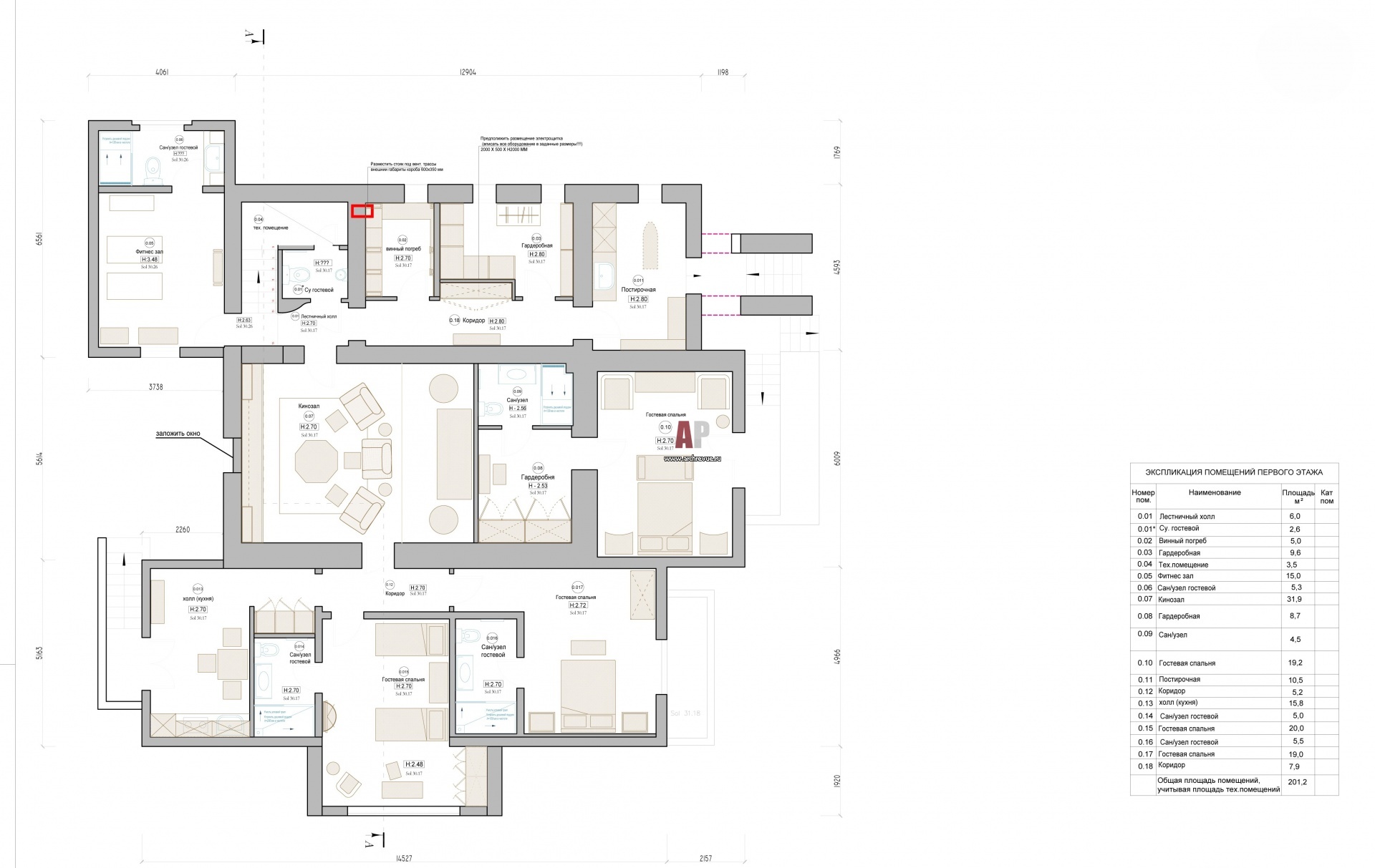 Планировка цокольного этажа загородной летней резиденции на Средиземном море.