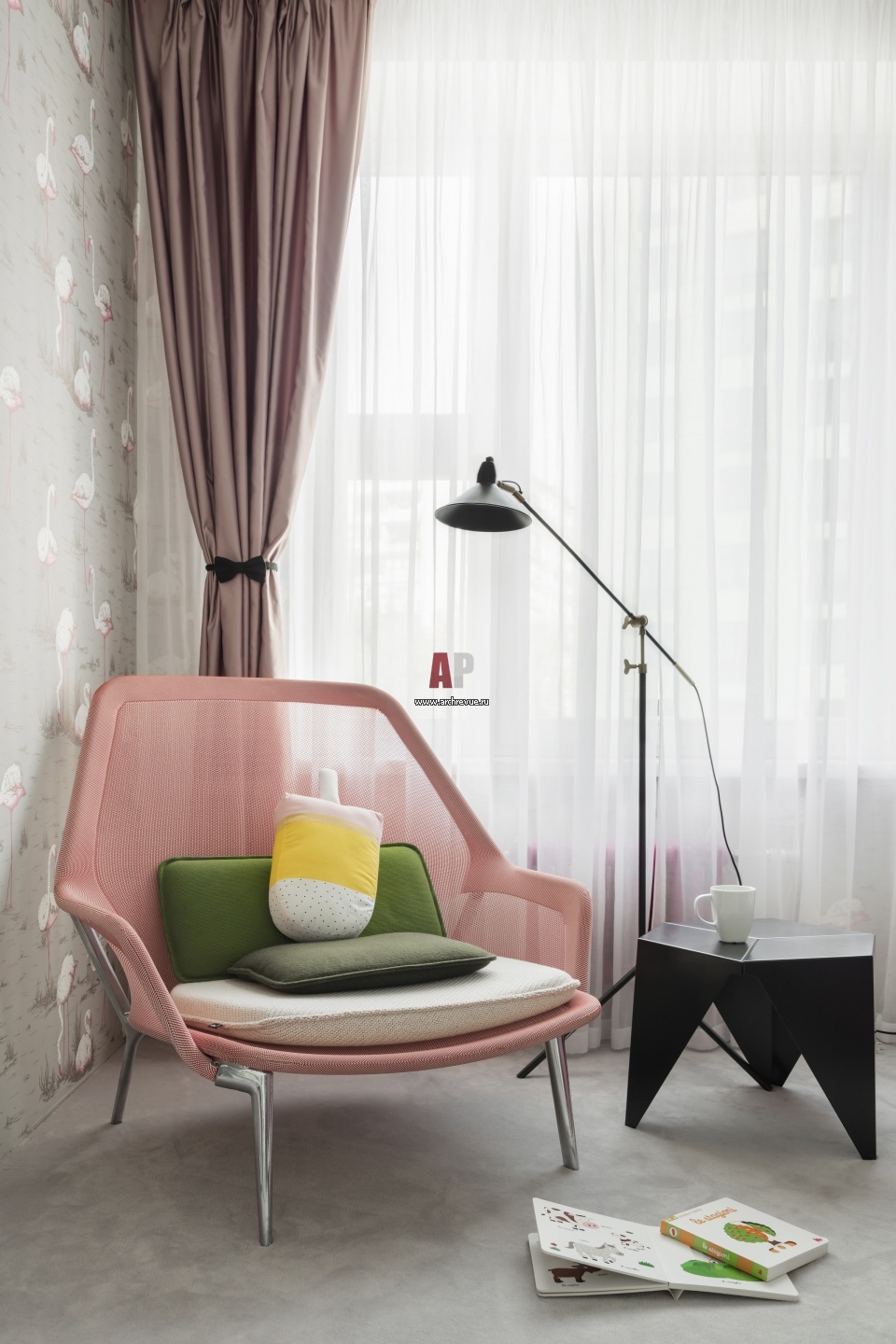 Интерьер детской в современной квартире. Розовое кресло, Vitra.