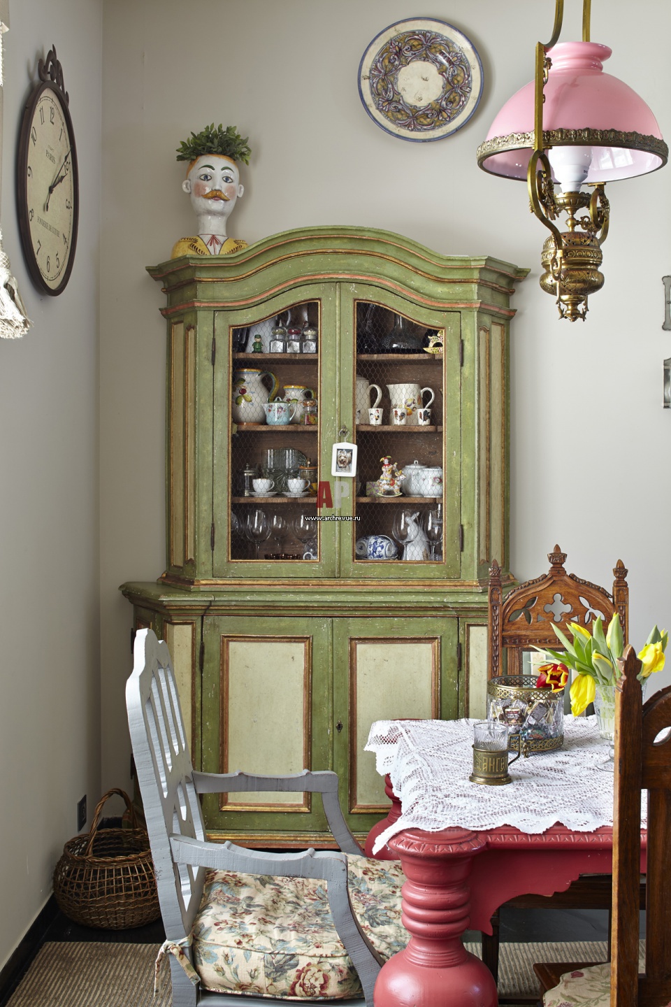 Кухня с элементами кантри. Произведенный на французской фабрике комод выглядит так, словно ему уже более 100 лет.