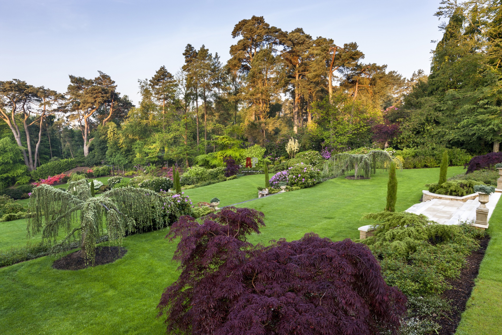 В качестве ярких цветовых акцентов добавлены краснолистные веерные клены. Они вносят азиатскую нотку в облик сада.