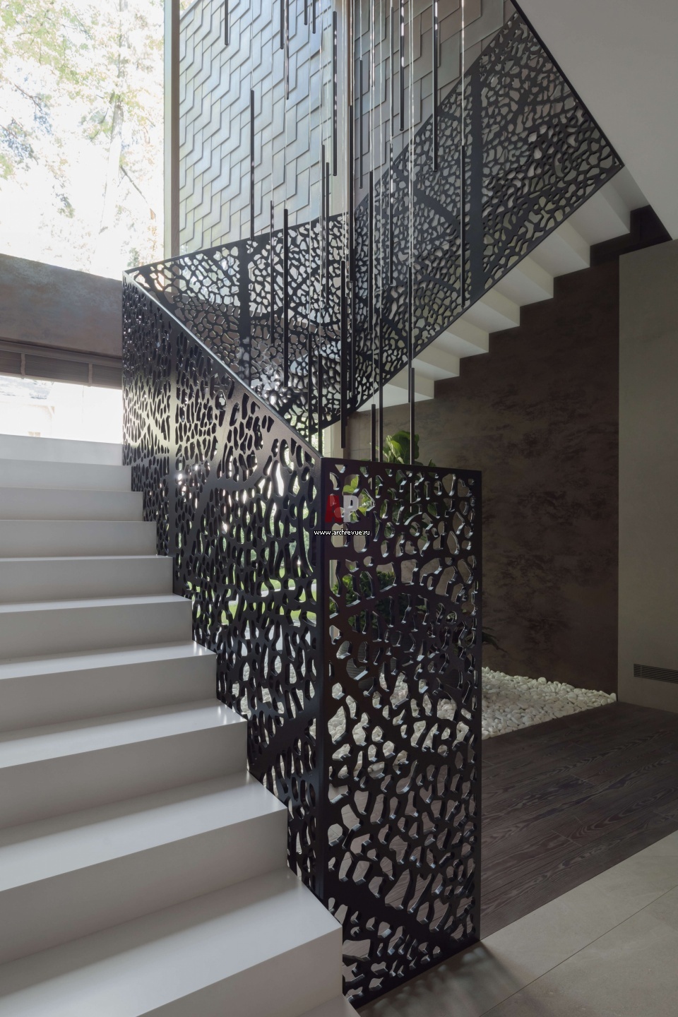 Верхняя часть лестничного холла оформлена оксидированной медью, KME TECU, отделка Oxid.