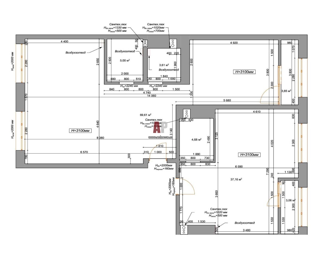 План квартиры для семьи с 2-мя детьми до перепланировки дизайнером.