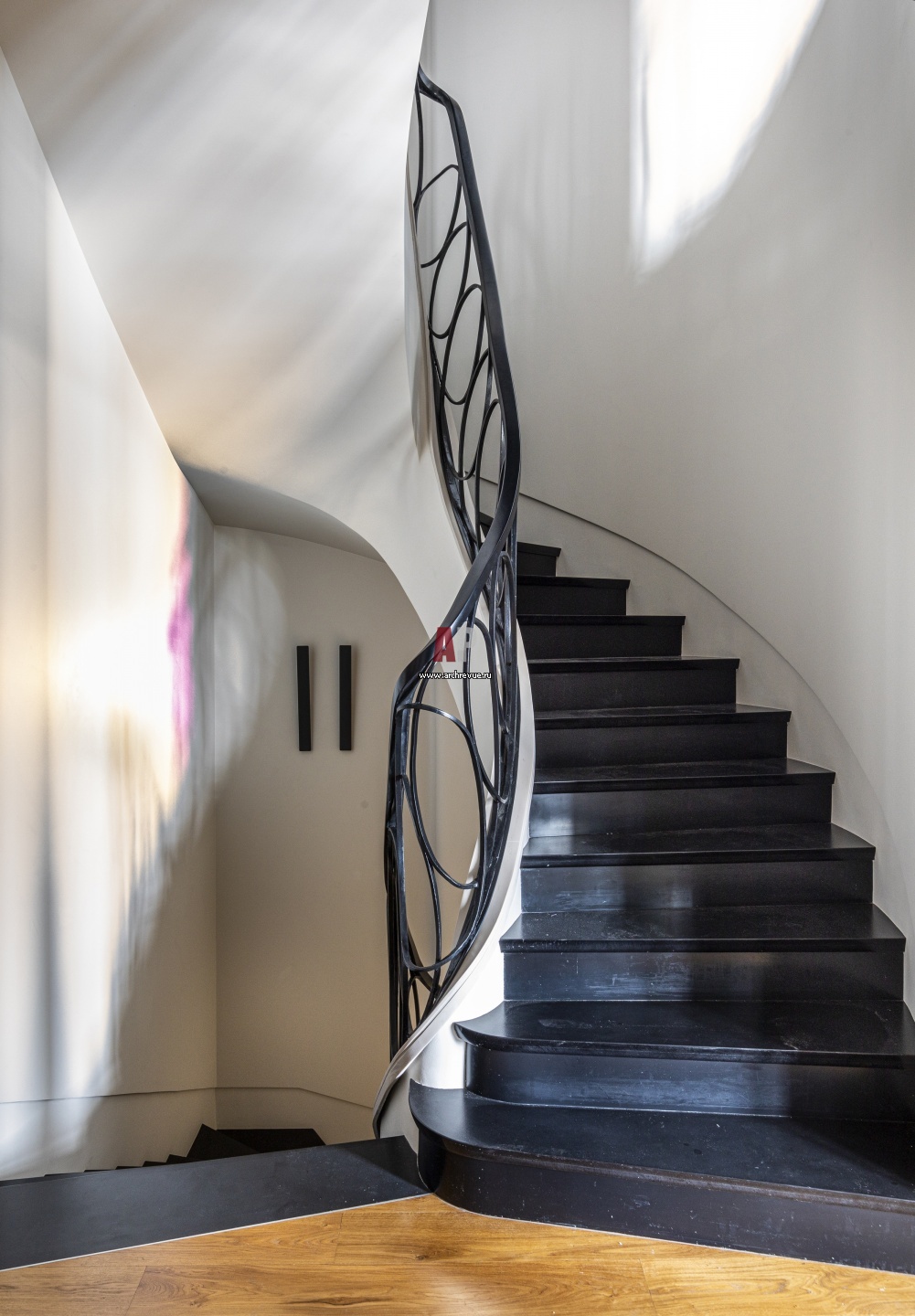 Над лестницей с красивой пластикой работало пять команд: одна изготавливала ступени из черного кварцита, другая – бортик из искусственного камня, третья – ограждение из гнутого крашеного металла, и еще две отвечали за поручень и декоративные финиши.