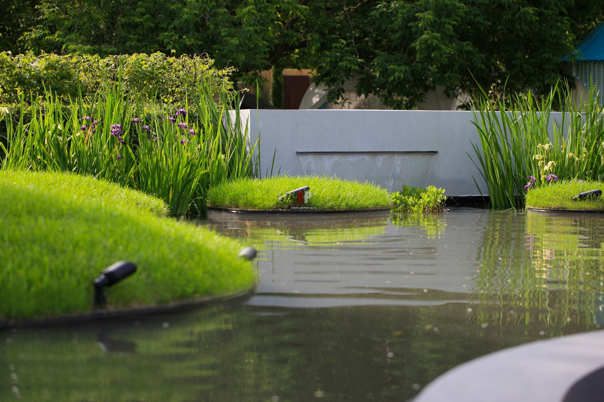 Миниатюрный искусственный водоем с фонтаном. Как в китайской и японской традиции, сад насыщен символами мужского и женского начал, элементами основных стихий.