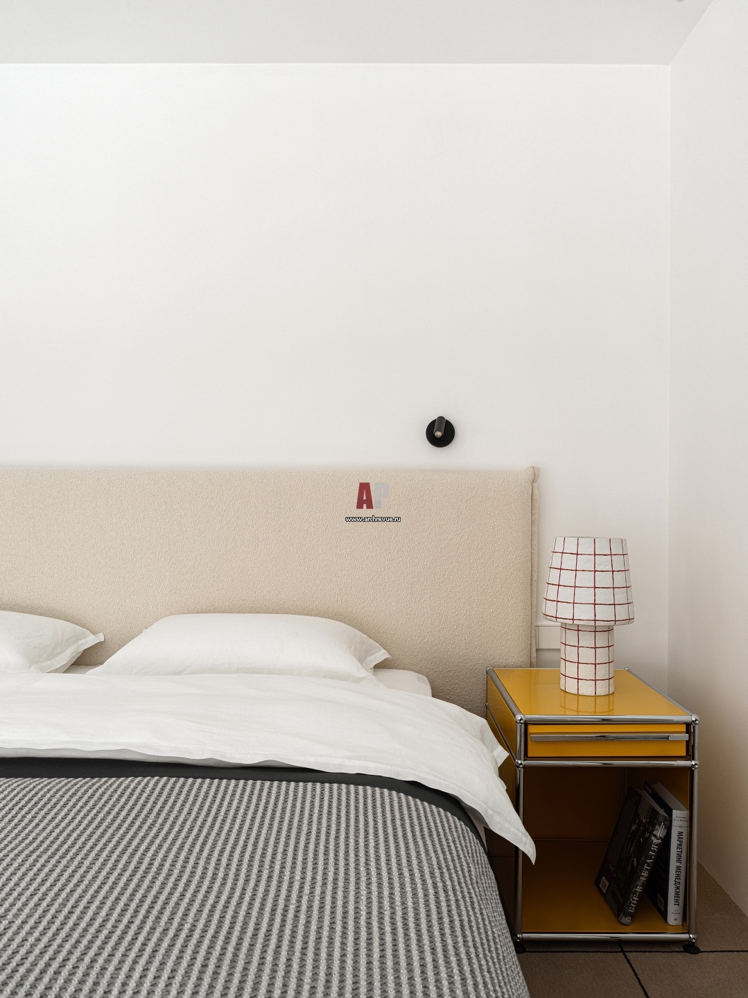 Яркий пентхаус с современным искусством в Екатеринбурге. Мастер-спальня на втором этаже.