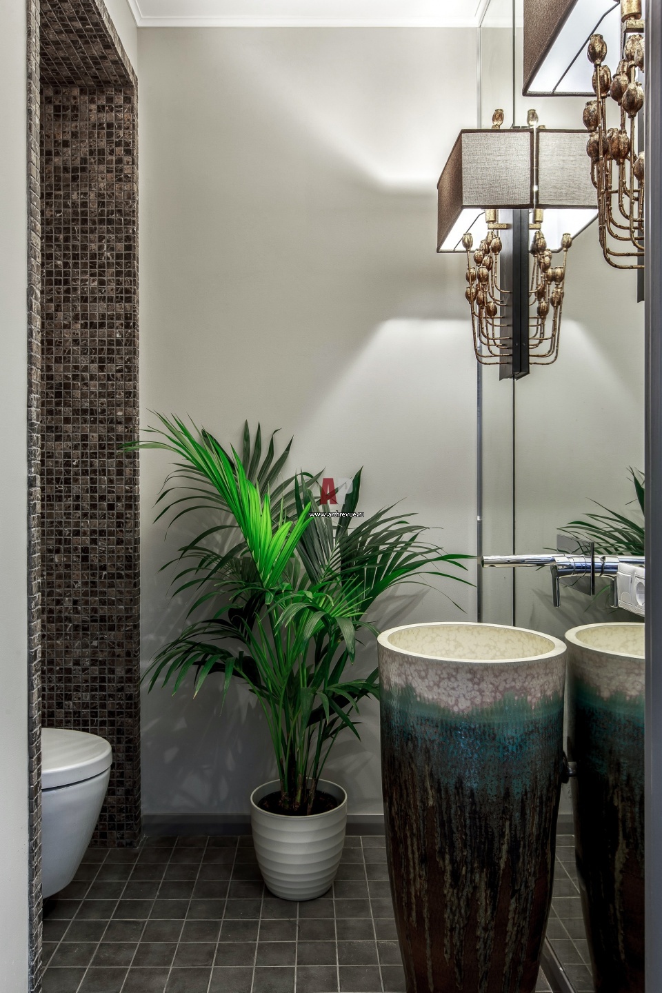 Гостевой санузел с природной тематикой. Напольная раковина, Loft Designe.