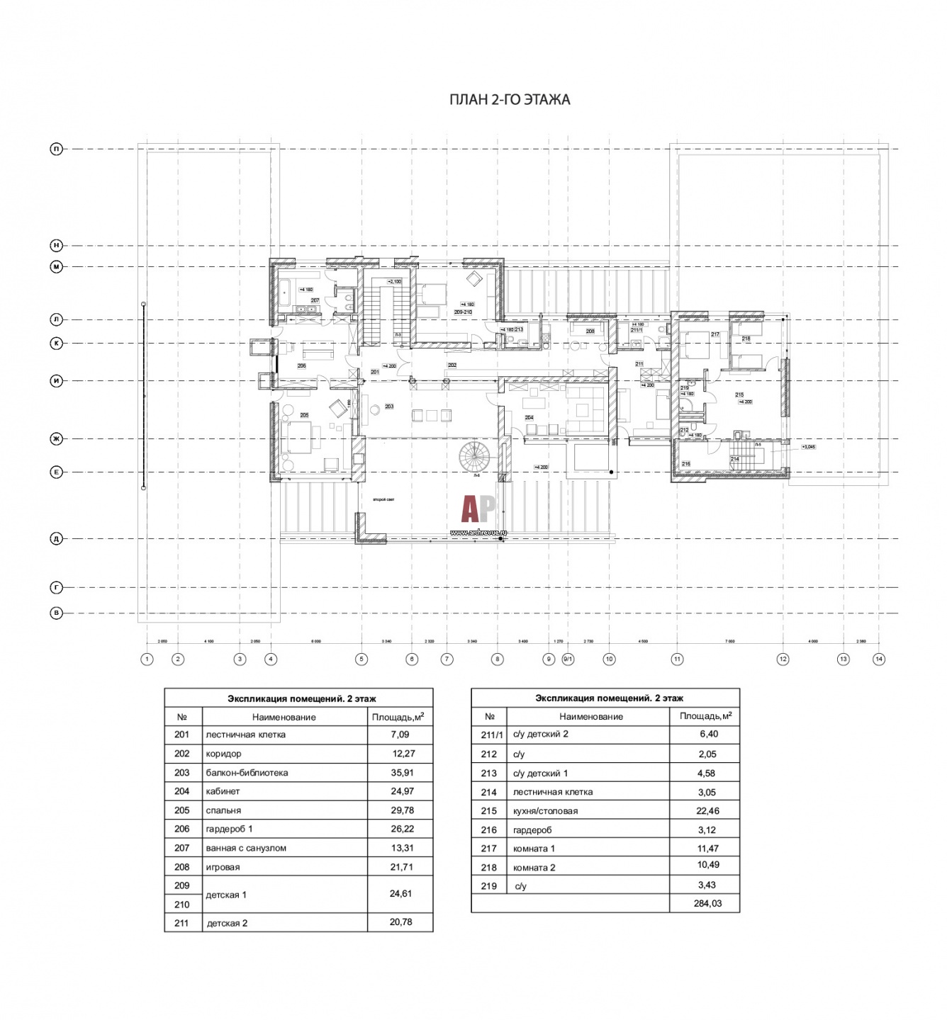 Планировка 2-го этажа с приватными помещениями хозяев дома. Общая площадь дома – 1500 кв. м.
