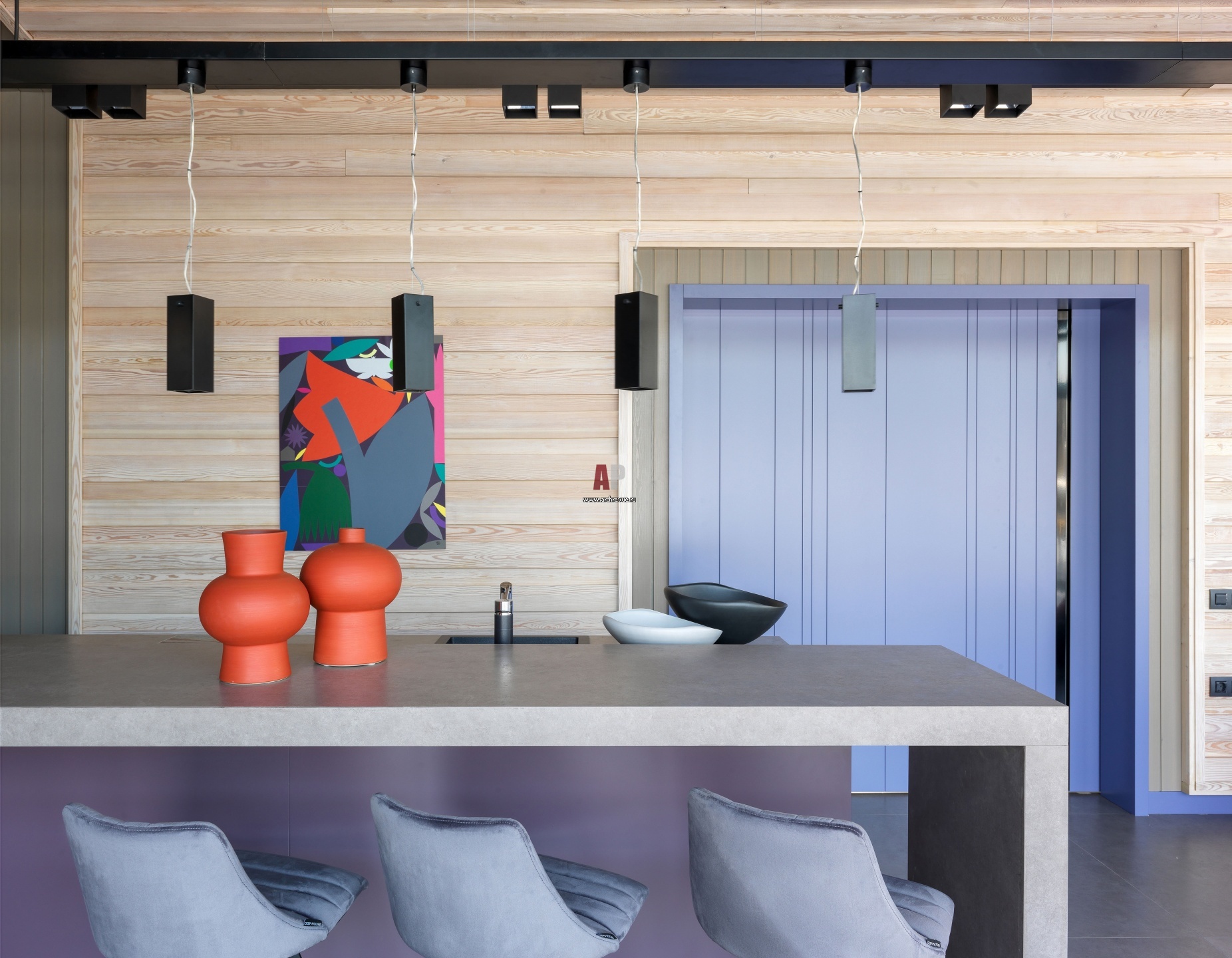 Интерьер кухни в гостевом доме в скандинавском стиле.