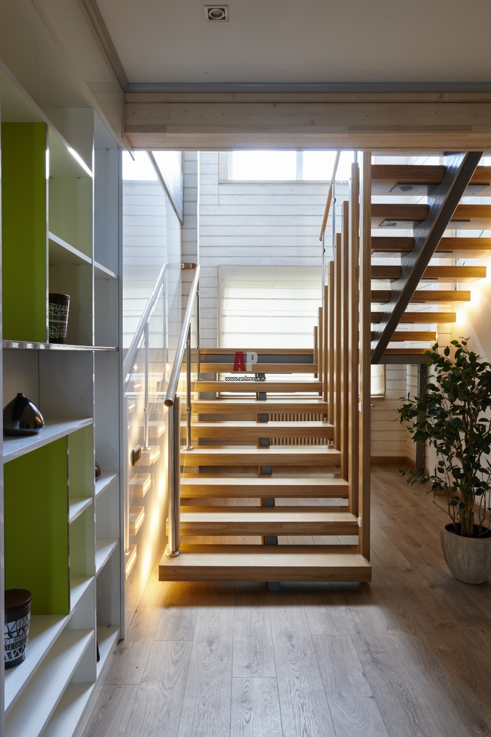 Фото интерьера лестницы небольшого дома в эко стиле
