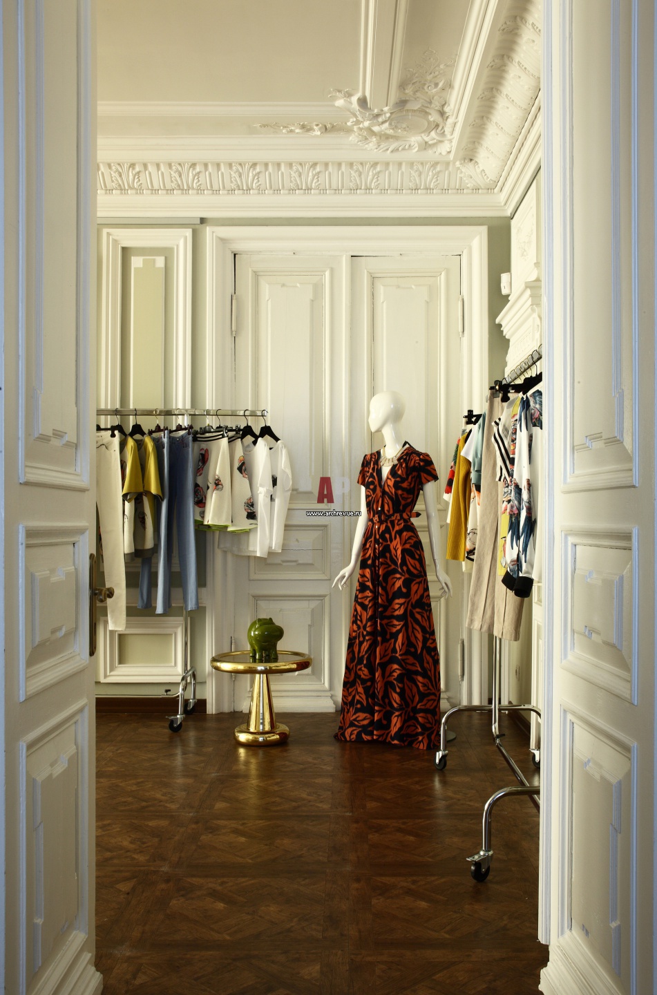 Бутик занимает помещение старинного дворянского особняка. Два его зала решены в разной стилистике. Высокие распашные двери из дерева с филенками были отреставрированы.