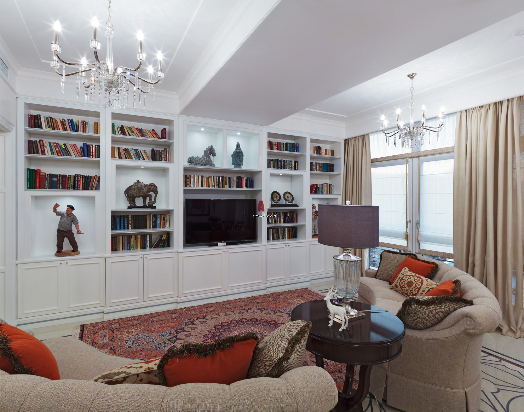 Интерьер гостиной с полукруглыми диванами. На стенах – живописные полотна современных художников из Москвы, Санкт-Петербурга и Владимирской области.