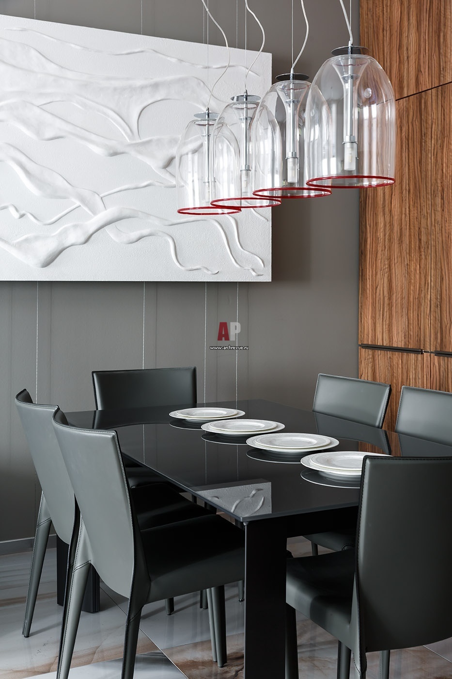Мужская квартира с барельефами. Столовая зона с обеденным столом и стульями, Cattelan Italia.