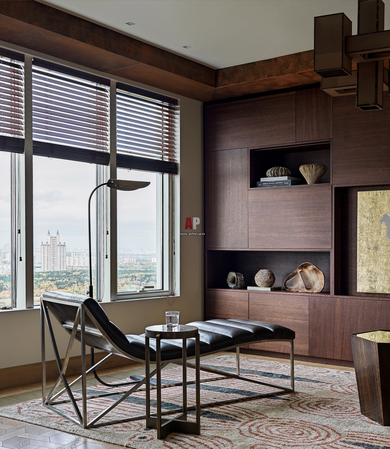 Двухкомнатная квартира в стиле natural contemporary. Интерьер общей гостиной. Потолочный светильник, Fine Art Lamps. Керамика, Savour Design и GK Concept.