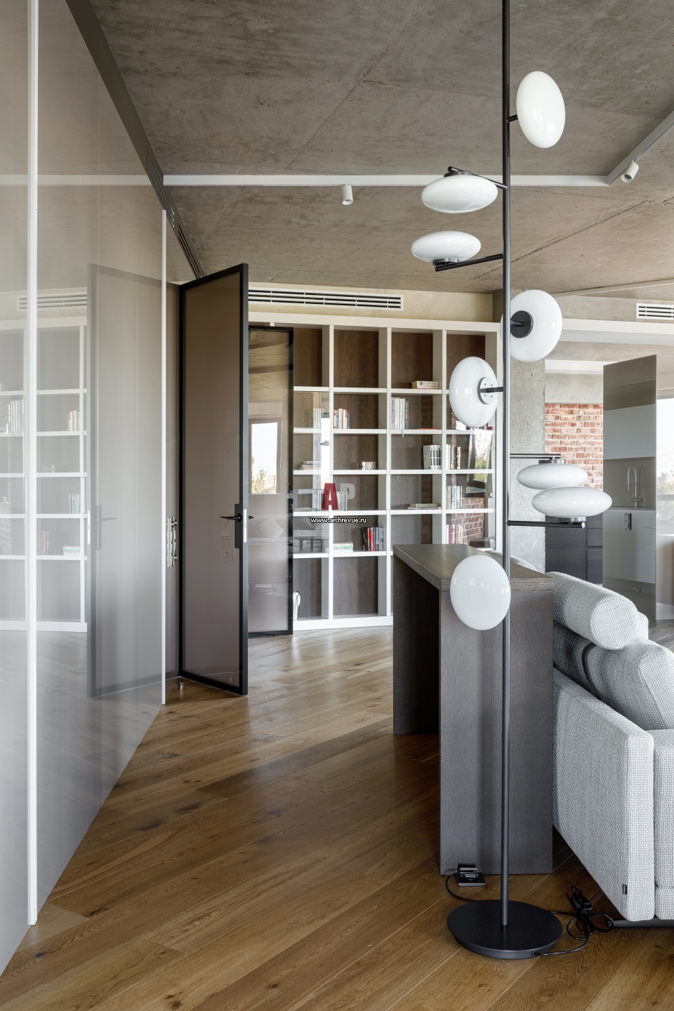 Бетонная квартира для большой семьи. Интерьер парадной гостиной.