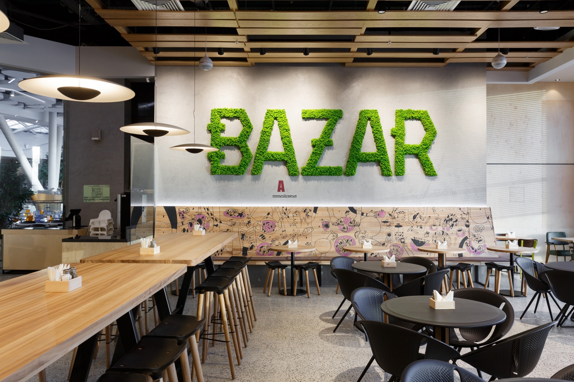 Интерьер демократичного ресторана BAZAR с авторским дизайном с элементами скандинавского стиля.