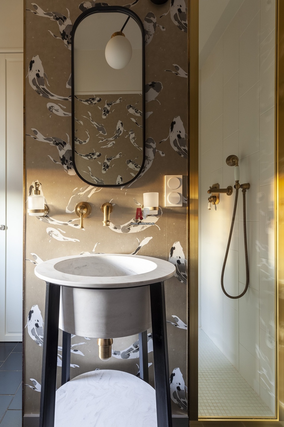 Гостевой санузел. Обои, Harlequin. Раковина из искусственного камня.
