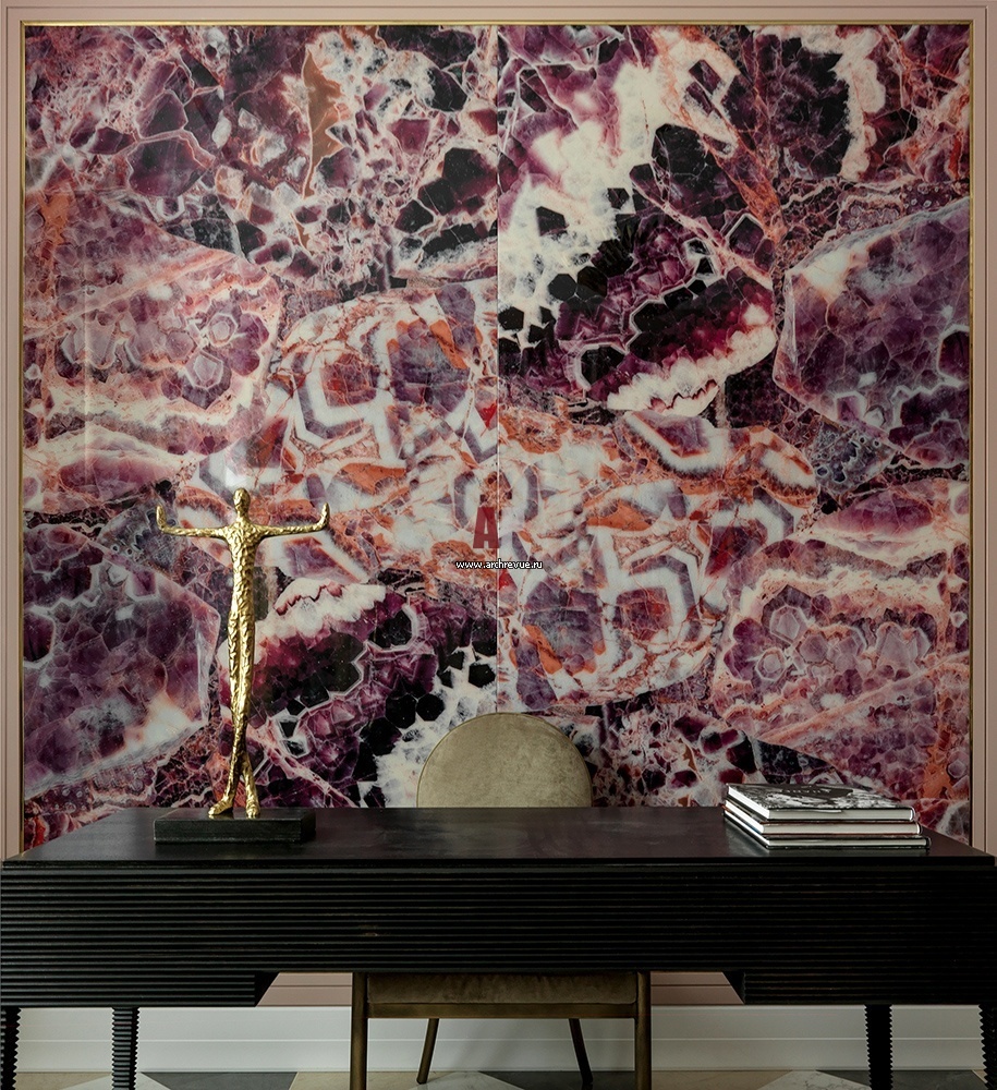 Классический дом для большой семьи. Интерьер кабинета хозяйки дома. На стене – панно из керамогранита Mirage, линия Amethys. Кресло, Eichholtz. Письменный стол, на заказ.