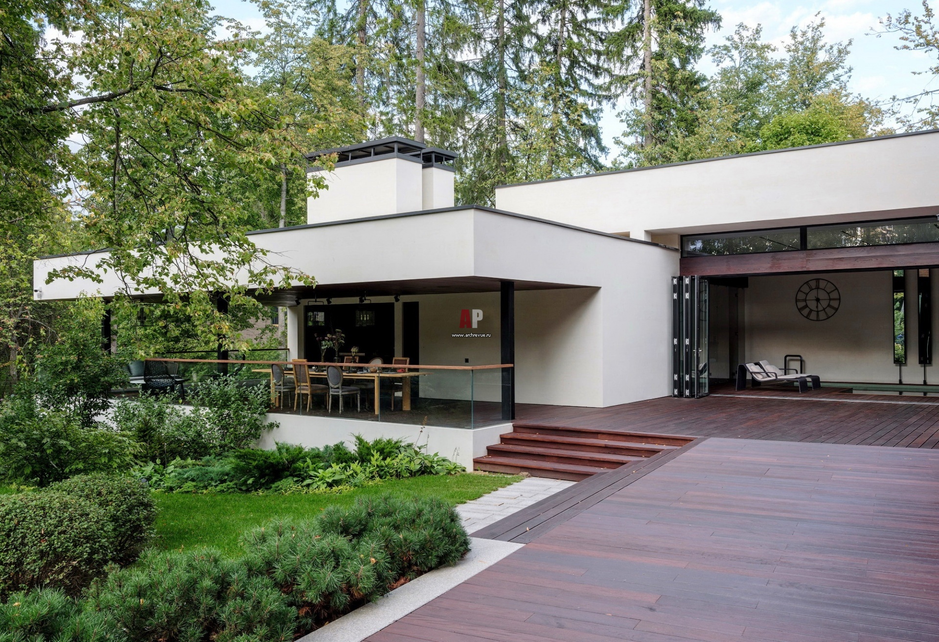 Архитектура СПА-комплекса отсылает к модернизму 1960-х годов. Помимо бассейна и банных помещений здесь расположена лаундж-зона с выходом на веранду.