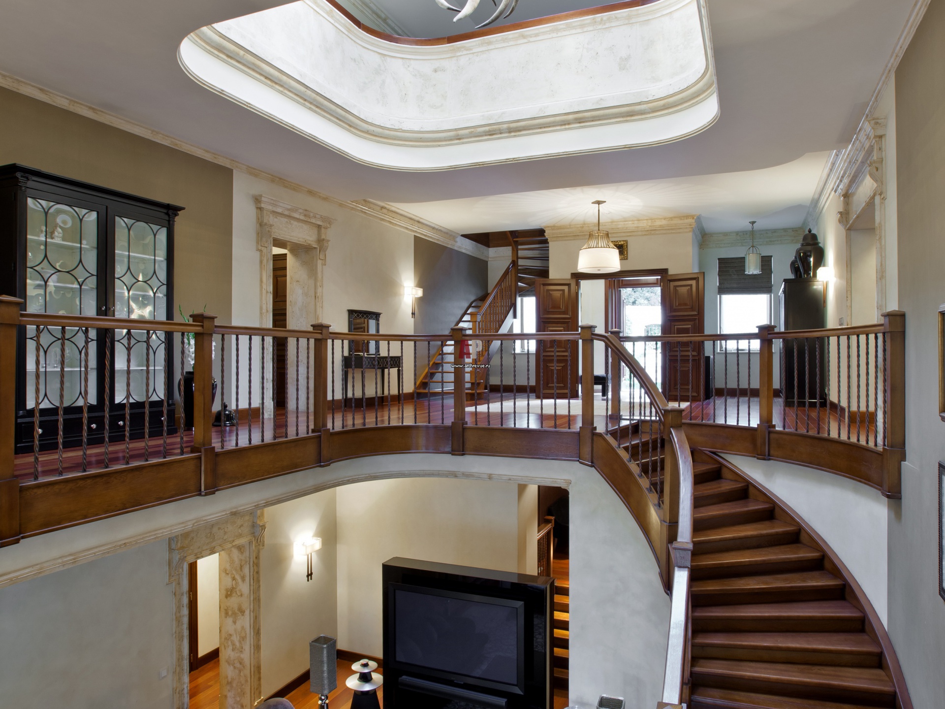 Фото интерьера парадного лестничного холла в консервативном буржуазном особняке.