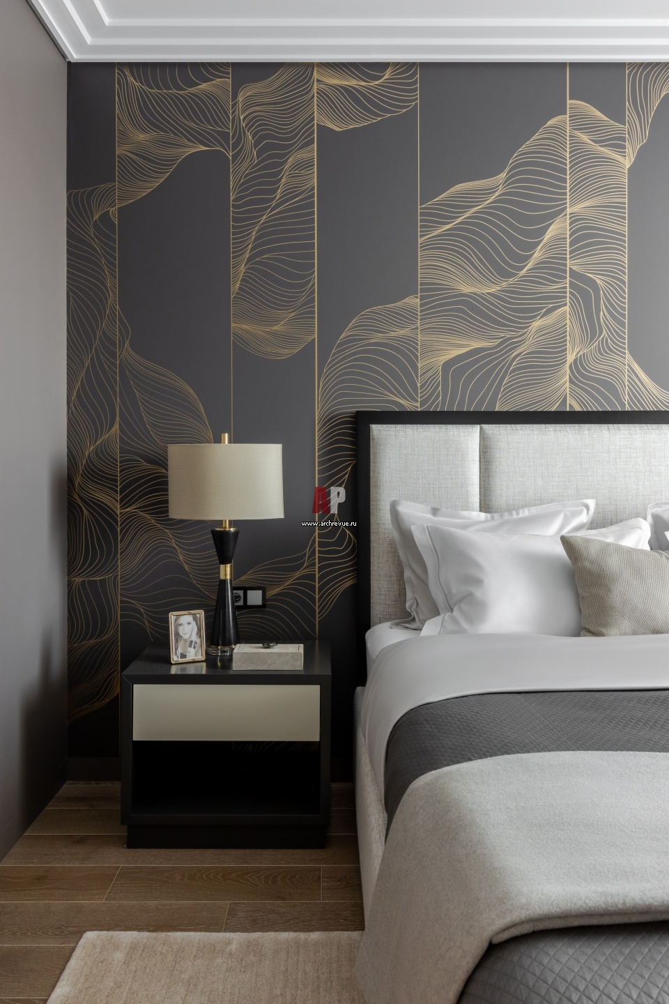 Функциональная квартира в высотке. Интерьер спальни. Настольные лампы, Uttermost.