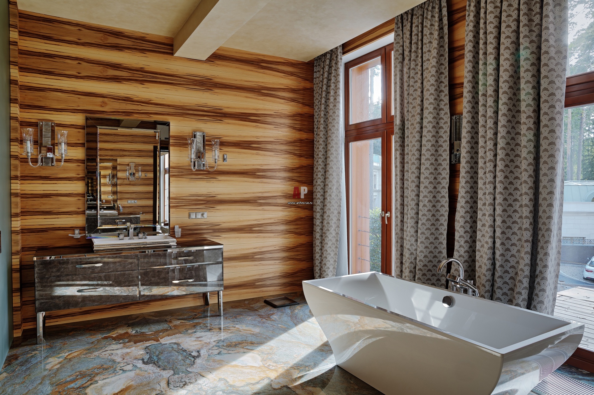 Интерьер ванной комнаты в эклектичном современном доме. Ванна, Bellevue, Villeroy & Boch.