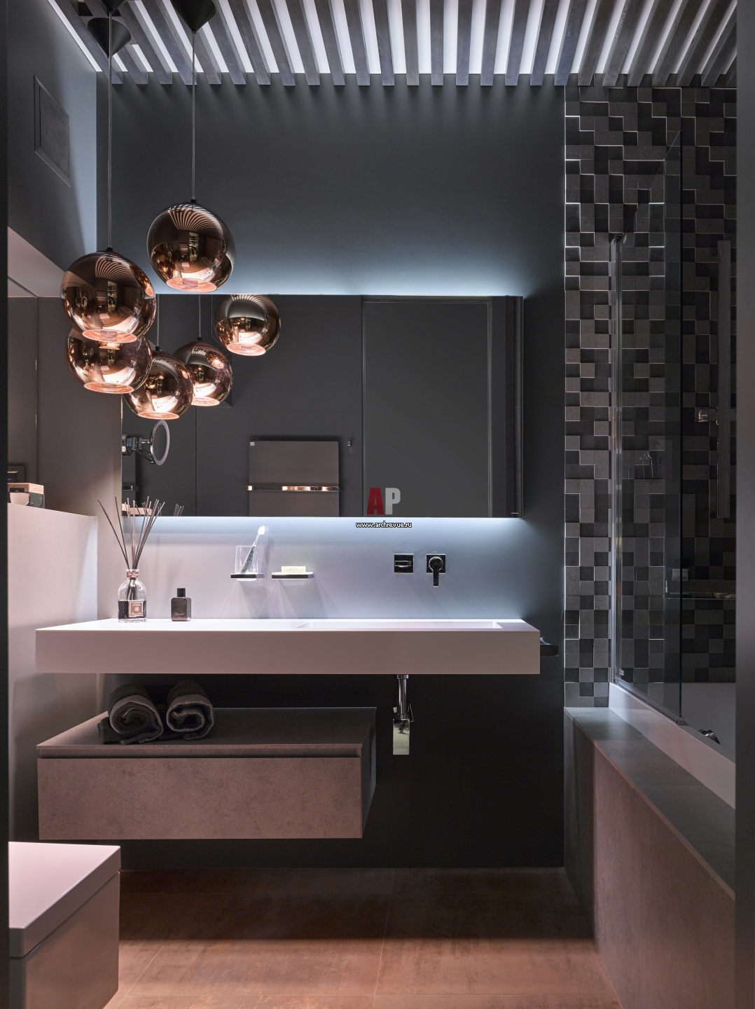 Фото интерьера гостевого санузла квартиры в стиле фьюжн