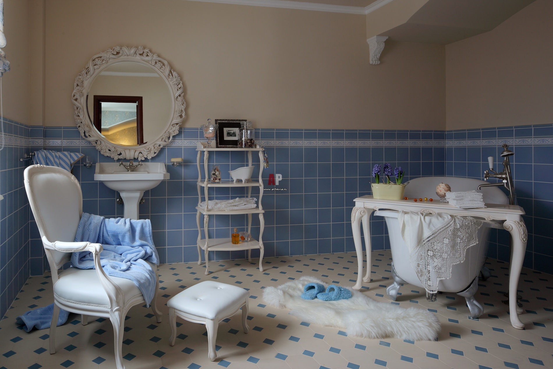 Ванная при «голубой» гостевой. На стенах – матовая плитка, поставщик «Интерьерный салон» («Биг Бен»). Сантехника Herbeau, поставщик Konzept.
