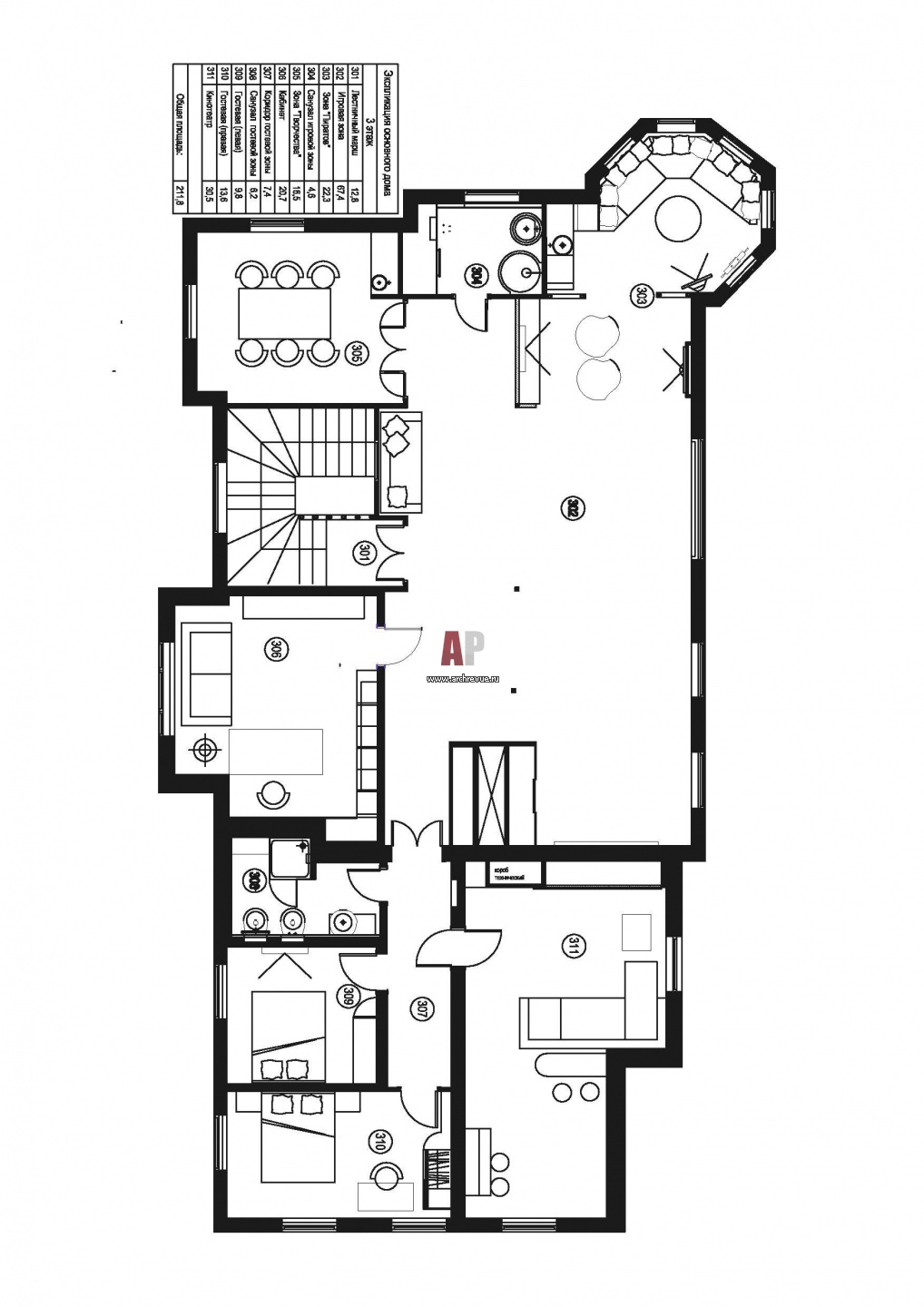 Планировка семейной резиденции с бассейном и зимним садом. План третьего этажа основного дома.